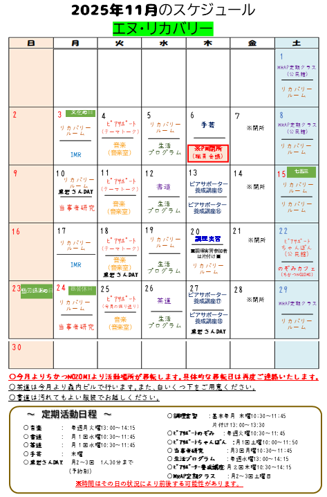 エヌ・リカバリーでは、「こころ」と「くらし」の回復を支えるために、多彩なコースを設けています。